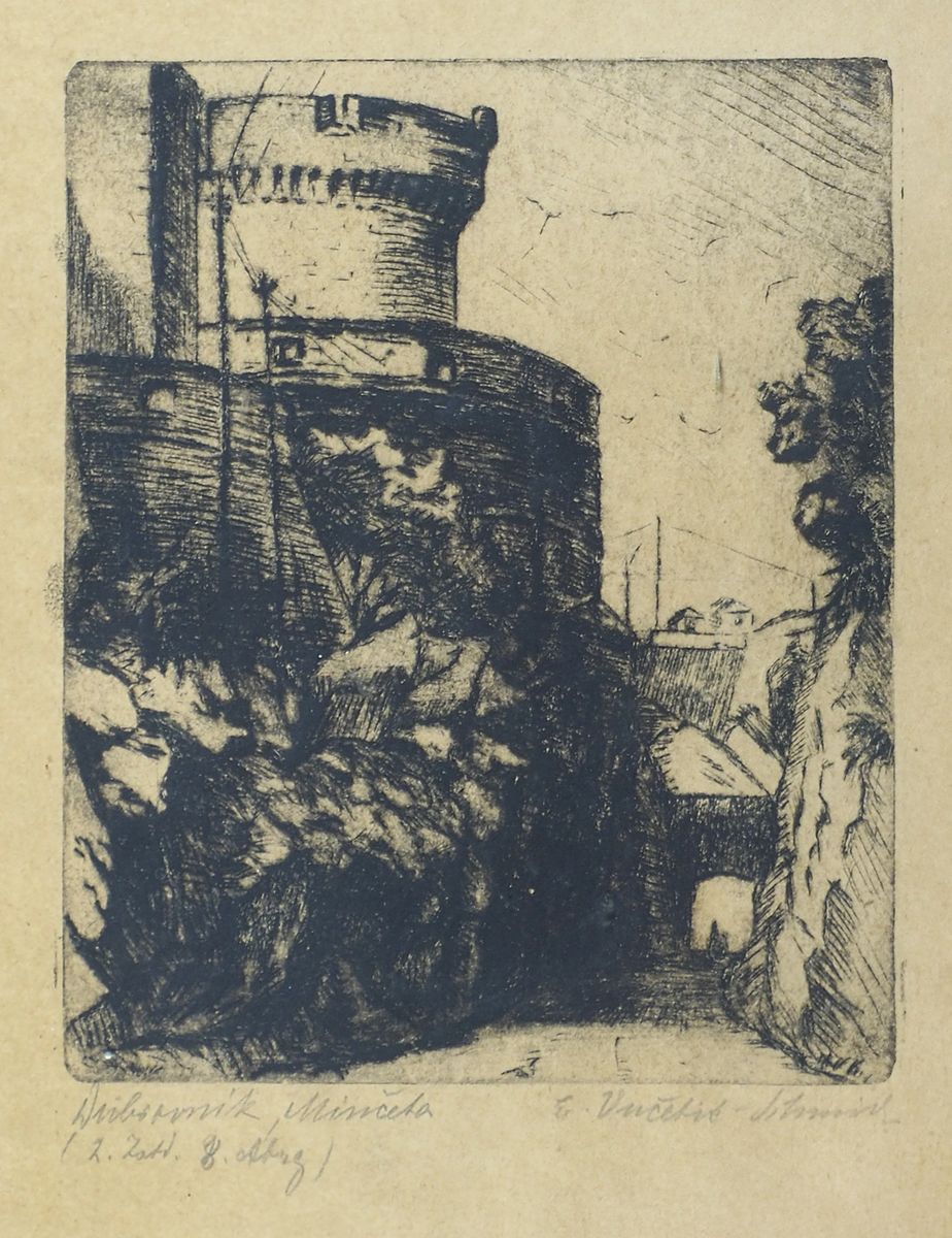 Lotto di 3 piccole incisioni incorniciate tra cui veduta di Dubrovnik. Misure diverse.