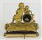 Orologio da tavolo in metallo dorato con figura di bambina, quadrante bianco con numeri romani. Lung. cm. 40.