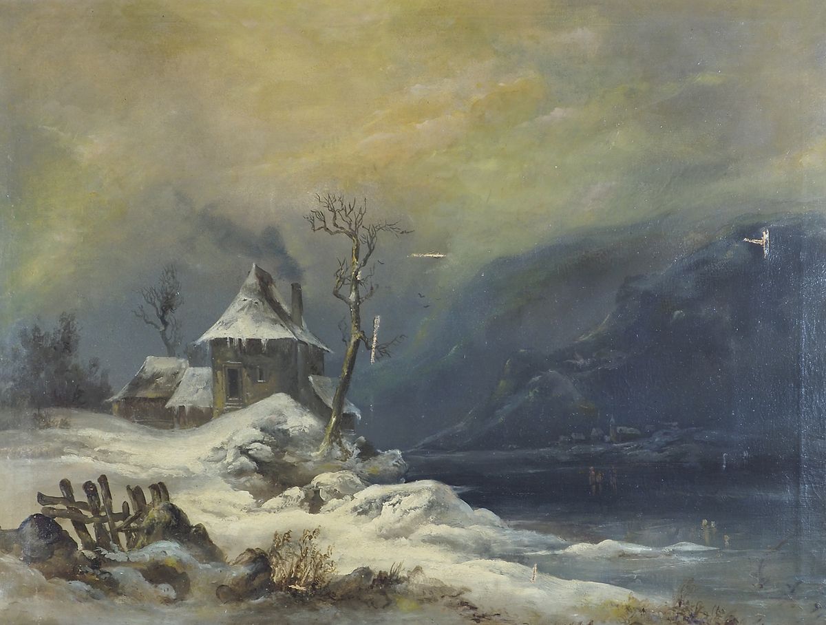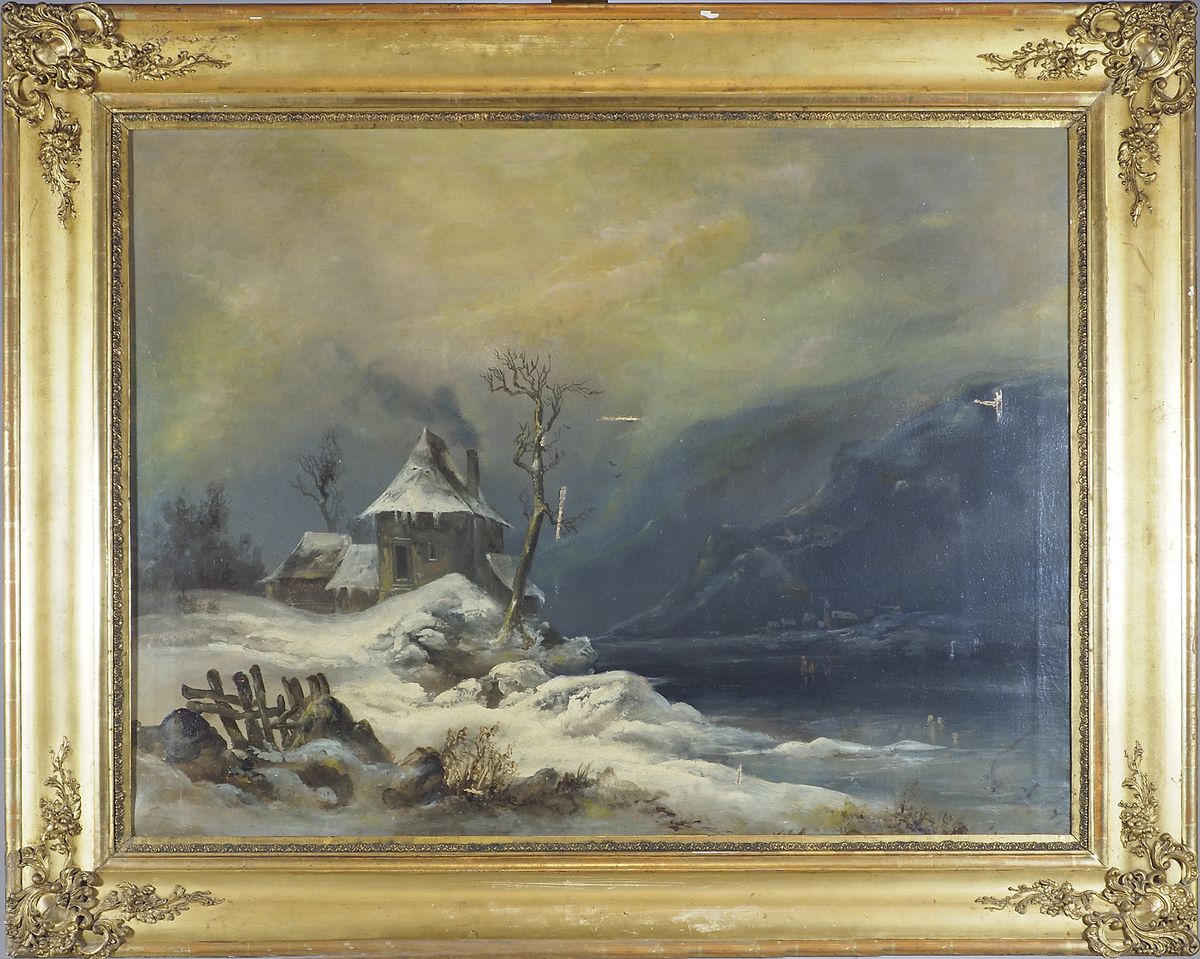 Maestro del XIX secolo "Paesaggio innevato" cm. 65x86 - olio su tela (rotture)