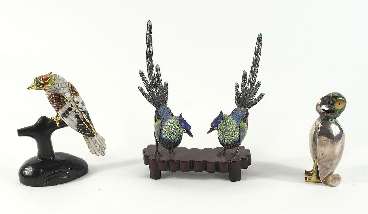 Lotto di 4 figure di uccelli decorati a smalti policromi.