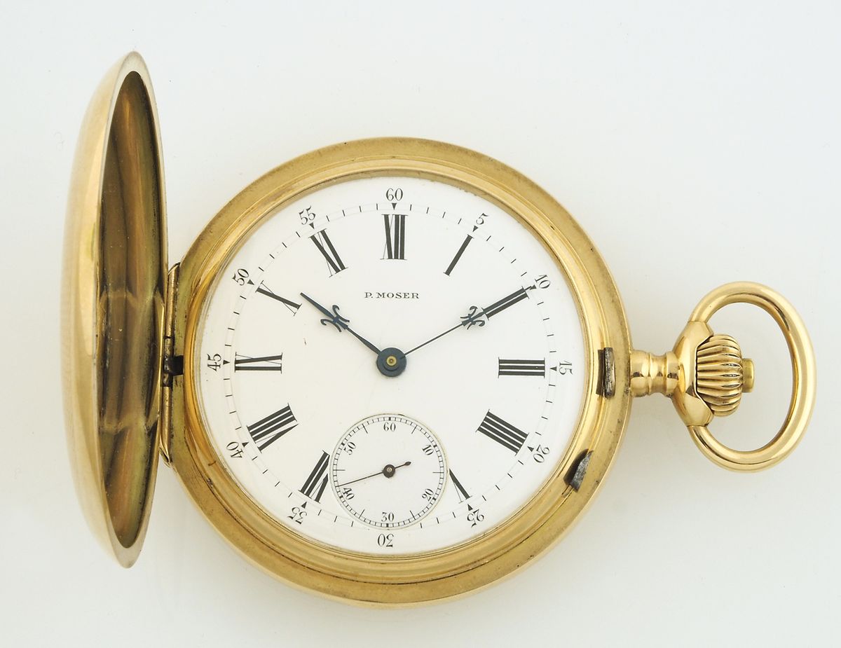 Paul Moser: orologio da tasca in oro 14Kt a tripla cassa, quadrante con...
