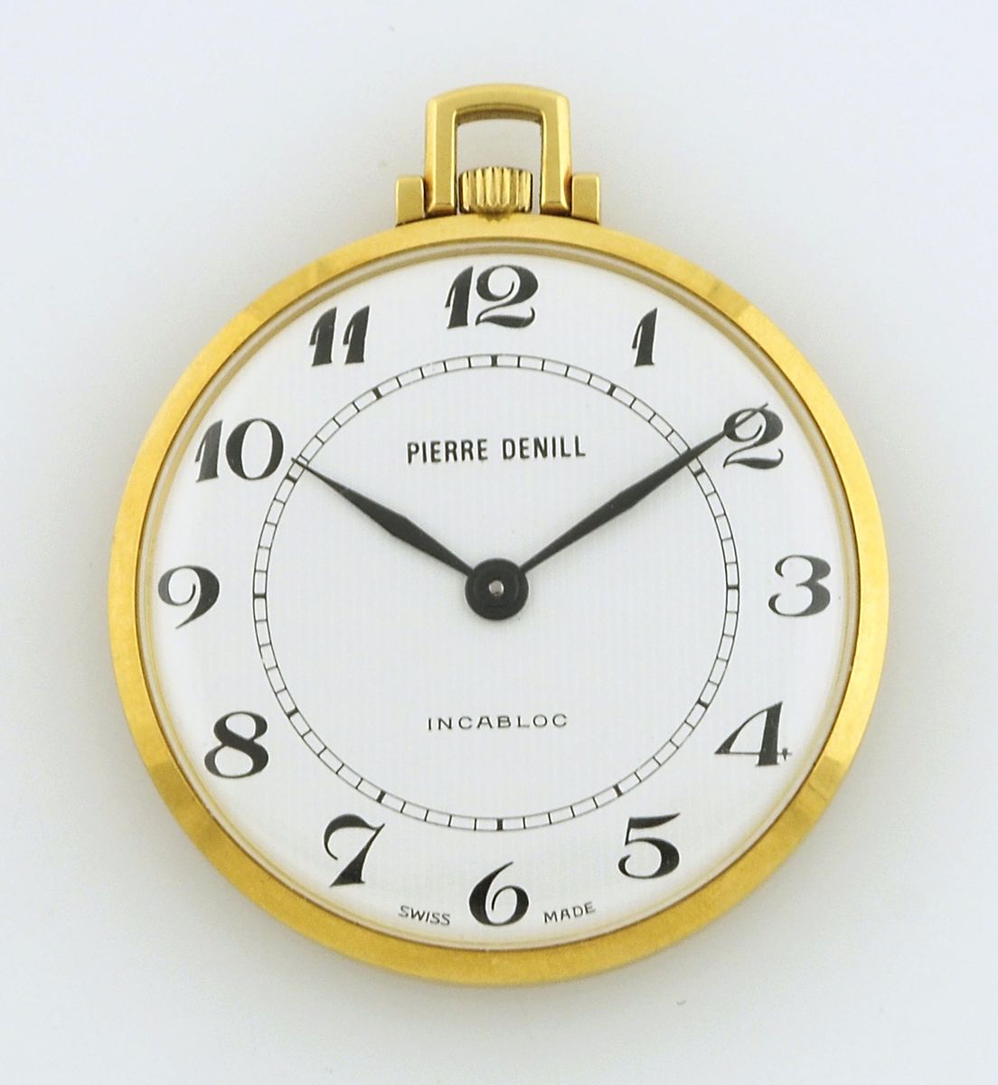 Pierre Denill: orologio da tasca con quadrante a numeri arabi. Diam. cm. 3,8.