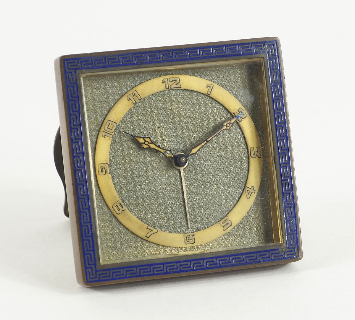 Piccola sveglia da tavolo in metallo e smalto blu. cm. 8x8.