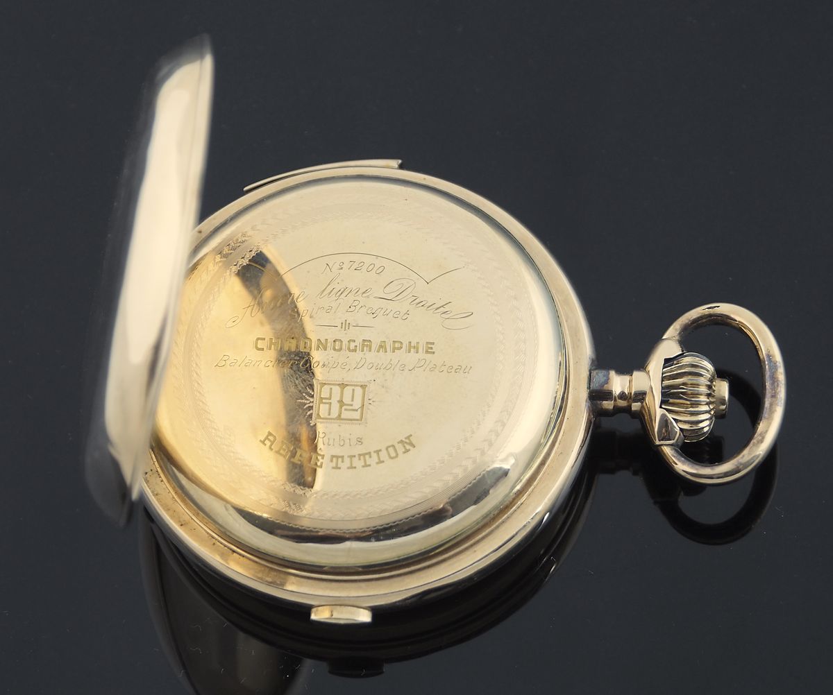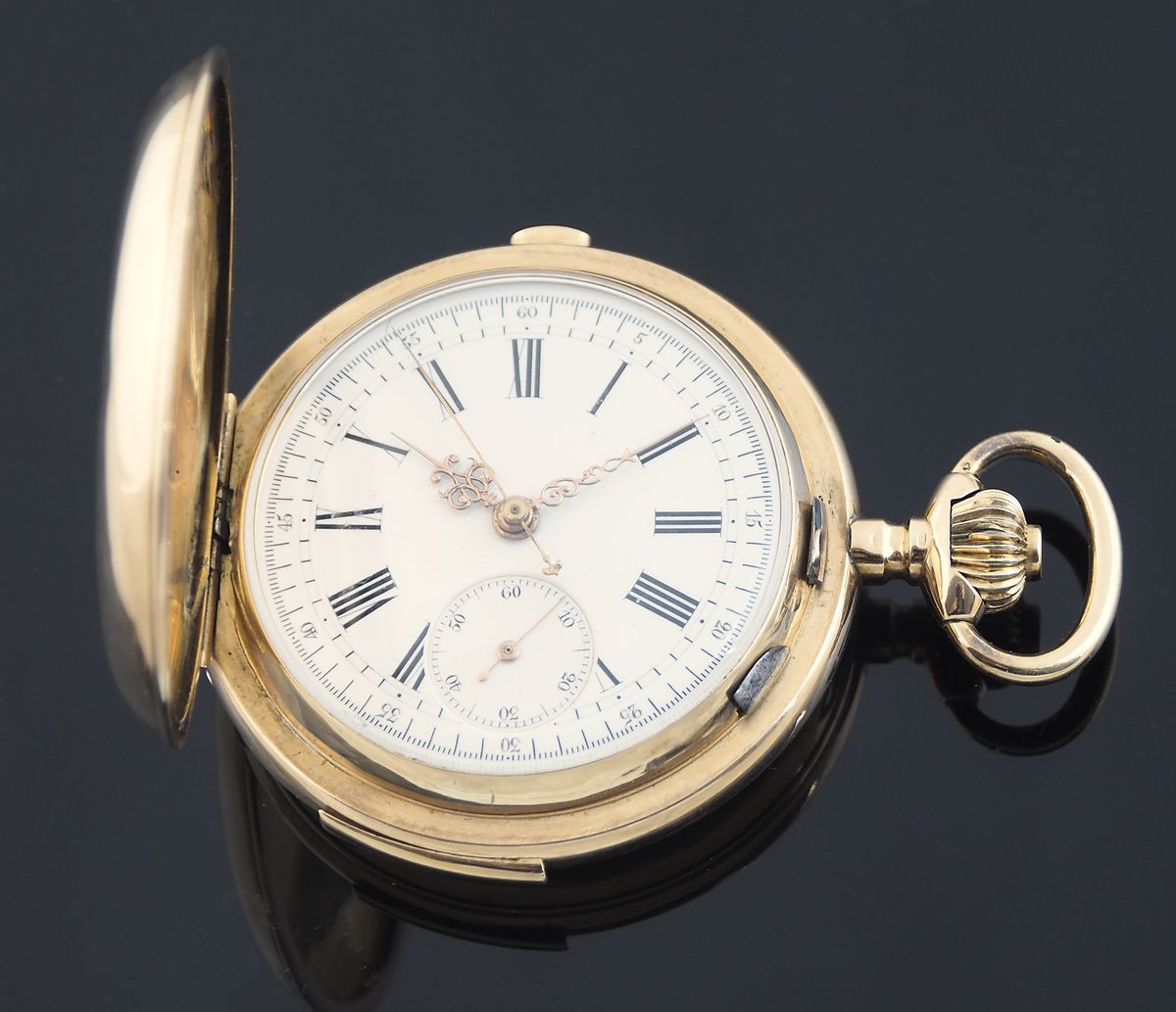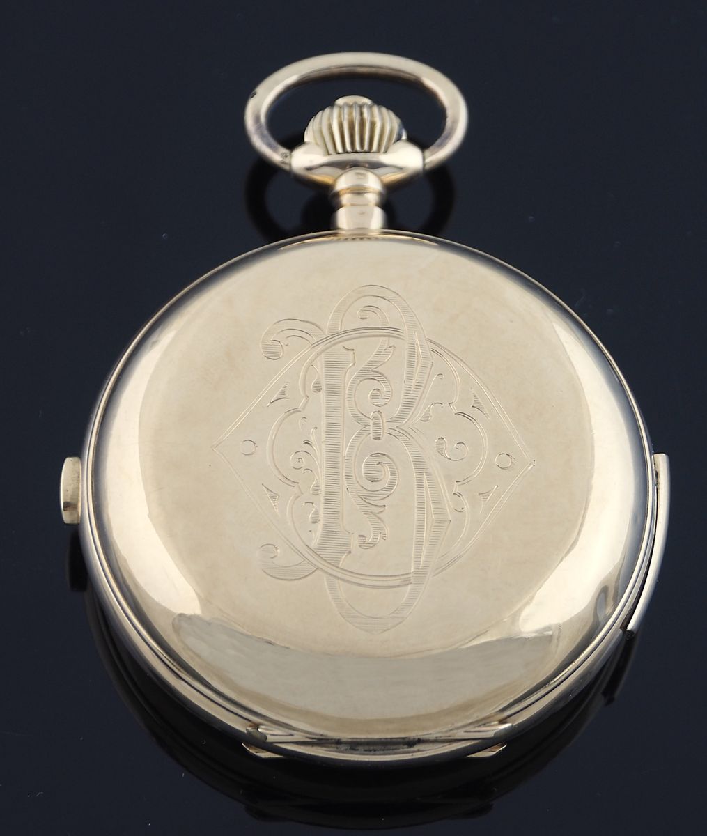 Orologio da tasca a tripla cassa in oro giallo 14kt, quadrante con numeri...