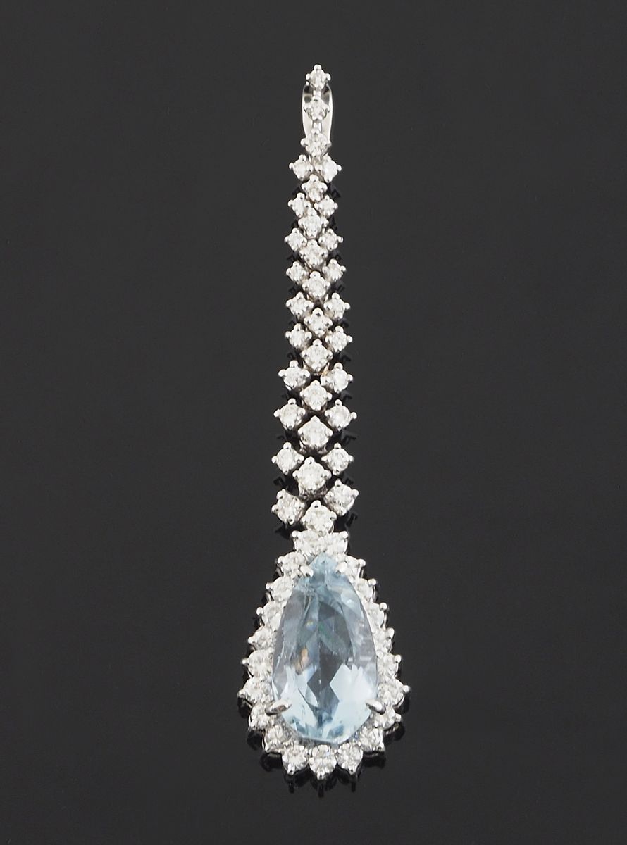 Pendente in oro bianco con diamanti e finale di acquamarina taglio ovale