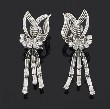 Orecchini pendenti in oro bianco e diamanti,parte superiore composta da...