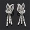 Orecchini pendenti in oro bianco e diamanti,parte superiore composta da elementi floreali parte inferiore 3 pendenti oscillanti
