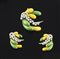 Parure composta da orecchini e spilla a motivi floreali in oro giallo e bianco con diamanti taglio brillante e smalti giallo e verdi (qualche difetto sui smalti)