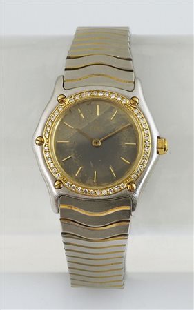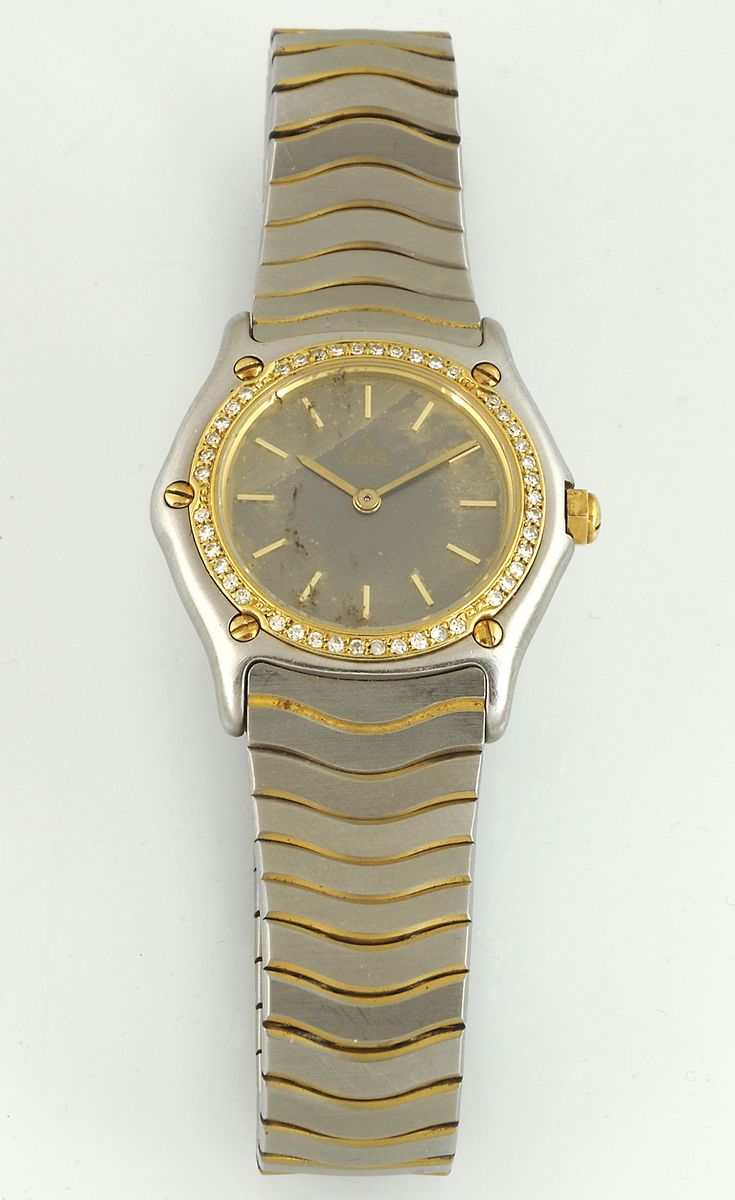 Ebel: orologio da polso da donna in acciaio, quadrante attornato da brillantini.