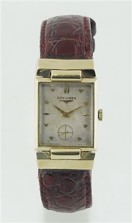 Longines: orologio da polso con cassa rettangoalre in oro giallo e anse mobili, secondi a ore 6.