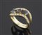Anello in oro giallo ad onda con 3 zaffiri centarli contornati da diamantini