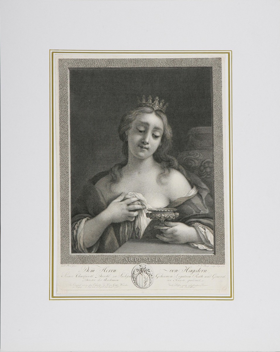 BAUSE JOHANN FRIEDRICH (1738 - 1814) Artemisia. 1770. Bulino. Cm 24,6x34,4. Incisione calcografica a bulino tratta da un dipinto di Guido Reni - Lipsia 1770 - Dim. del foglio con piccoli margini L. 24,6 x 34,4 cm. (dim. della sola parte incisa senza le lettere L. 23,8 x 29,8 cm.).Bibliogr.: MILESI, 64 - E. BENEZIT, II, 531-532 (Ed. del 1976) - LE BLANC, I, 203-210 - BRYAN’S, I, 97.