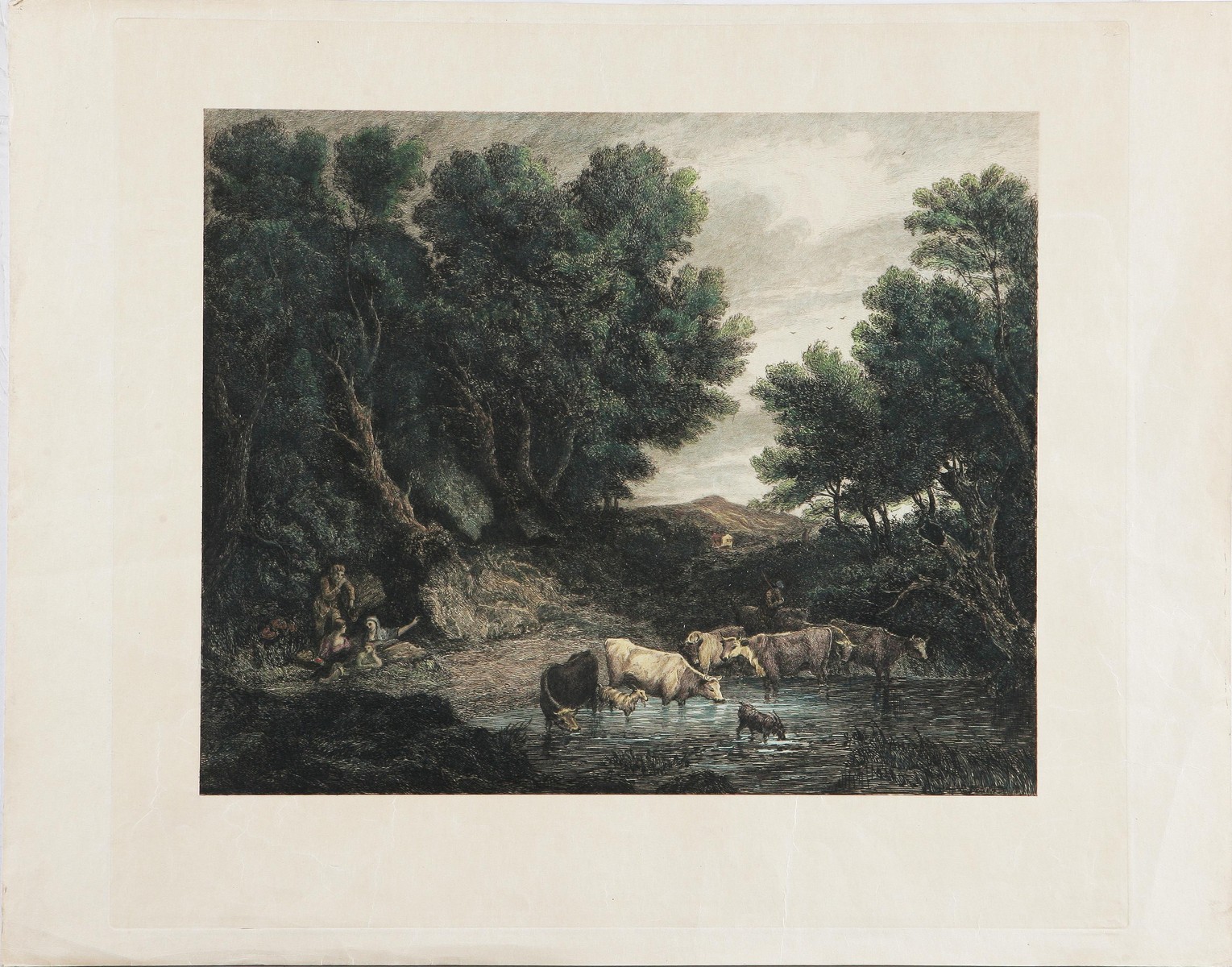 LAW DAVID (1831 - 1901) Mucche all'abbeveraggio. 1880. Calcografia. Cm 70x55. Incisione calcografica alla punta avanti le lettere con acquarellatura non coeva - Londra 1880 ca. - Dim. dell’intero foglio con ampi margini L. 70 x H. 55 cm. (dim. della sola parte incisa L. 47,5 x 39,2 cm.).Bibliogr.: MILESI, 205 - BRYAN’S, III, 187-188 - E. BENEZIT, VI, 494 (Ed. del 1976).