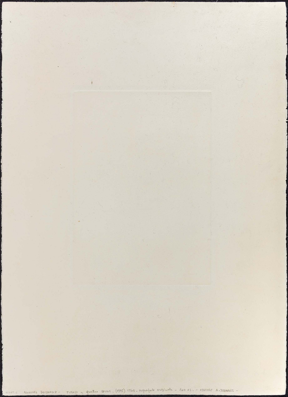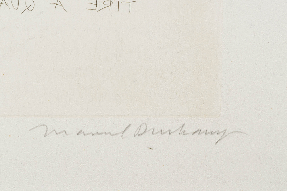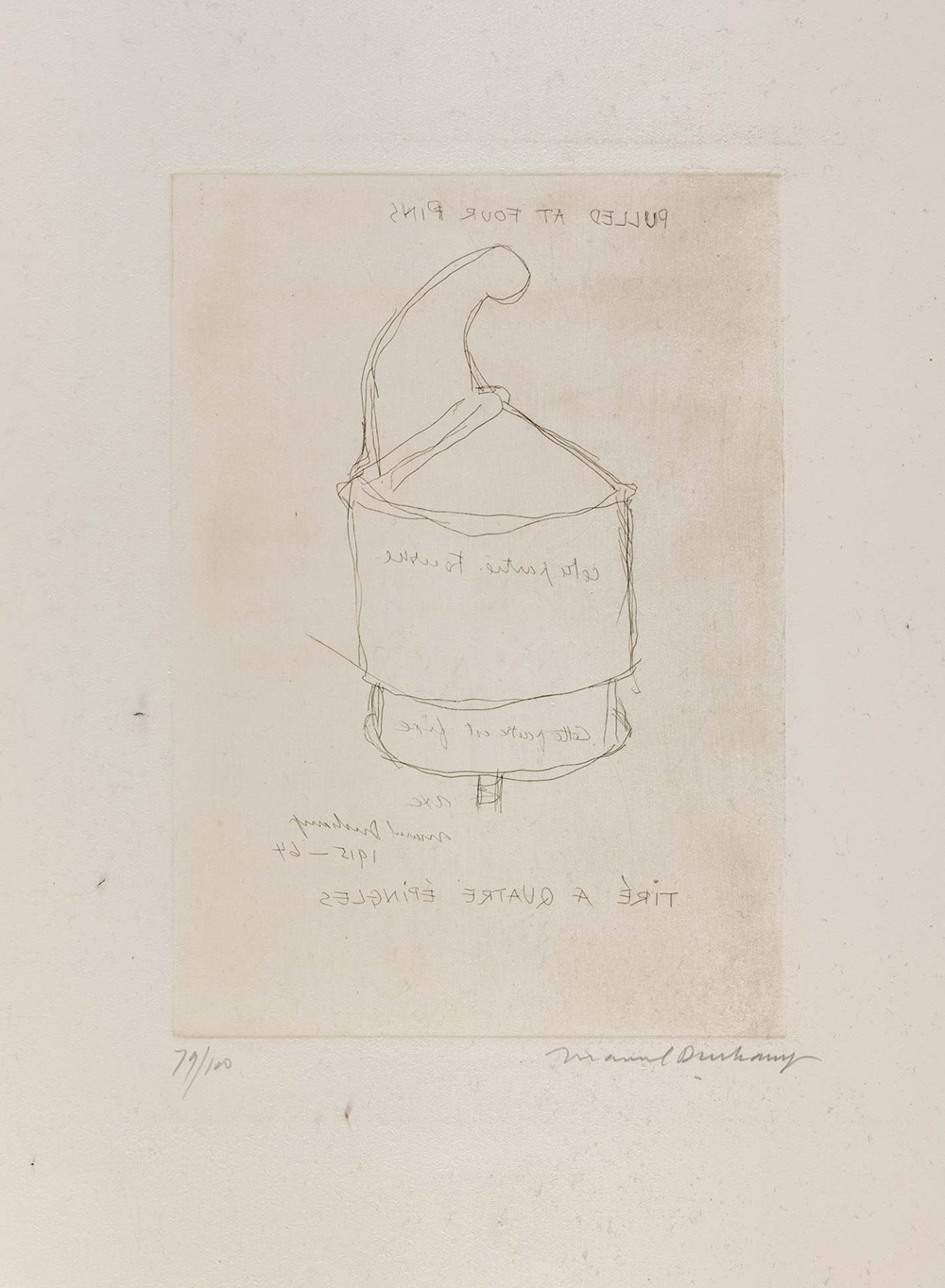 MARCEL DUCHAMP (1887 - 1968) Pulled at four pins 1915-1964 Acquaforte su...