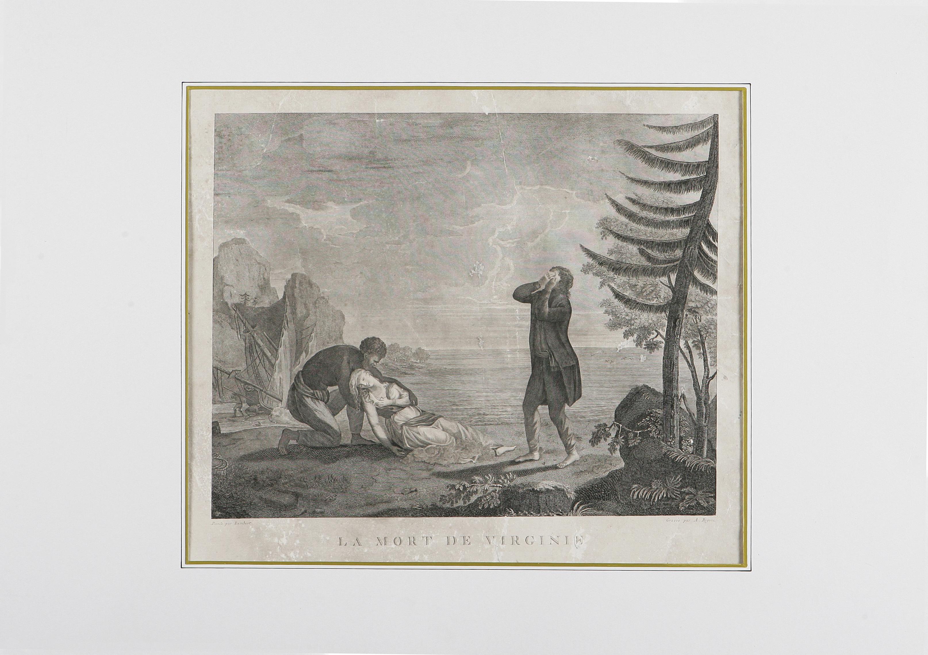 REGONA ANTONIO (1760 - 1853) La morte di Virginia. Bulino. Cm 47x41. Incisione calcografica a bulino tratta da un dipinto di Lambert - Francia primi ‘800 - Dim. del foglio con buono margini L. 47 x 41 cm. (dim. della sola parte incisa senza le lettere L. 38 x 31 cm.).Bibliogr.: LE BLANC, III, 293 - MILESI, 269 - A. PELLICCIOLI, 147 - ZANI, XVI, 61.