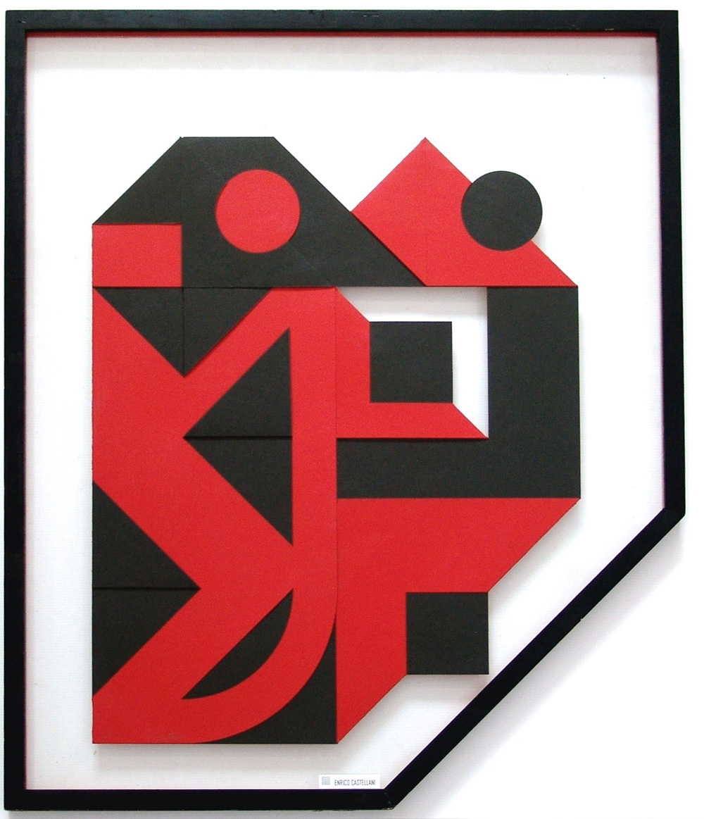 Enrico Castellani 1930, Castelmassa (Ro) - 2017, Celleno (Vt) - [Italia] Nero-rosso collage multiplo 70x56 cm 1999 es. p.a.; firma dell’artista in basso a sinistra; opera con cornice certificato di autenticità Picenum