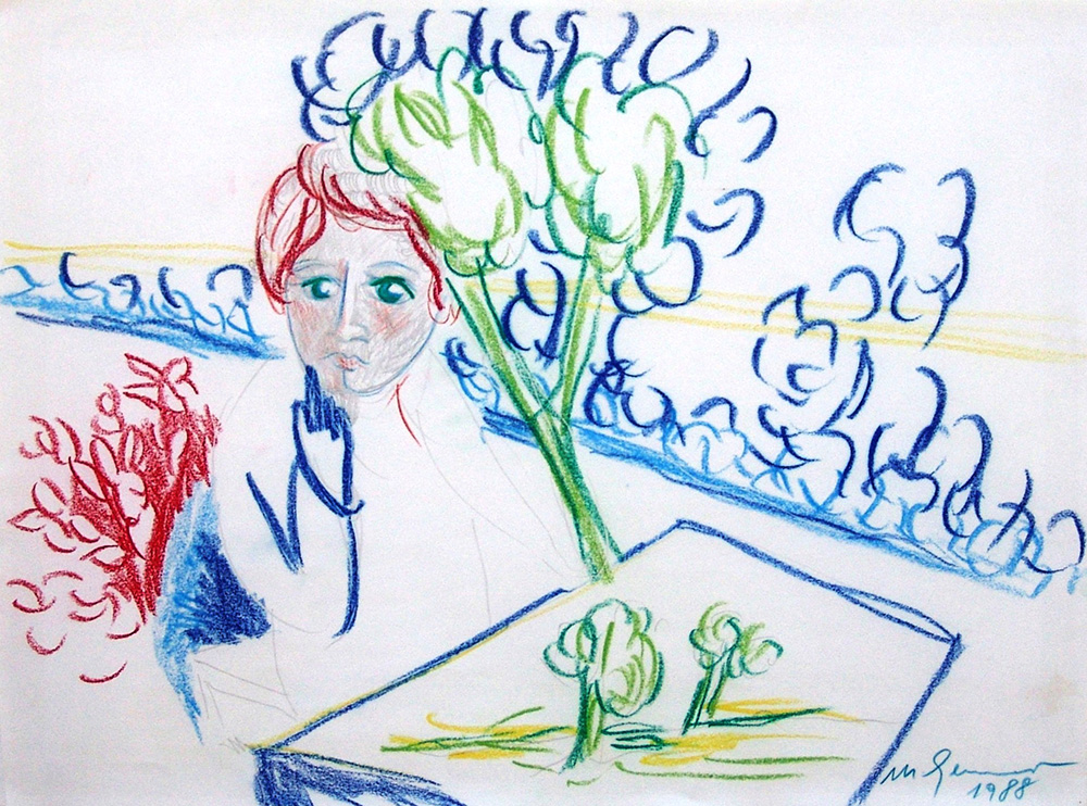 Mimmo Germanà 1944, Catania (Ct) - 1992, Busto Arsizio (Va) - [Italia] senza titolo pastelli su carta 30x40 cm 1988 firma dell’artista in basso a destra; opera con cornice certificato d'autenticità Picenum