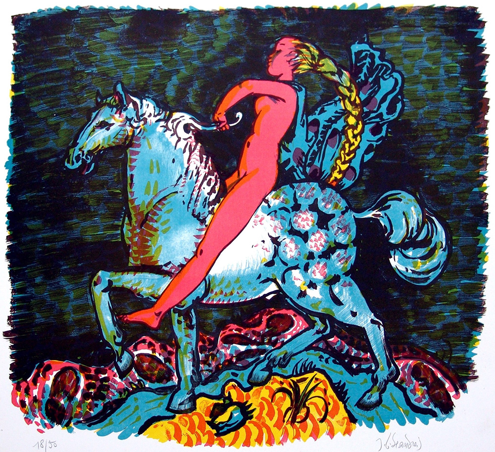 Giovanni Battista De Andreis 1938, Badalucco (Im) - [Italia] Amazzone litografia 50x70 cm 1970 es. 18/50; firma e timbro a secco dell'artista in basso a destra; edizione Teodorani di Milano certificato di autenticità Picenum
