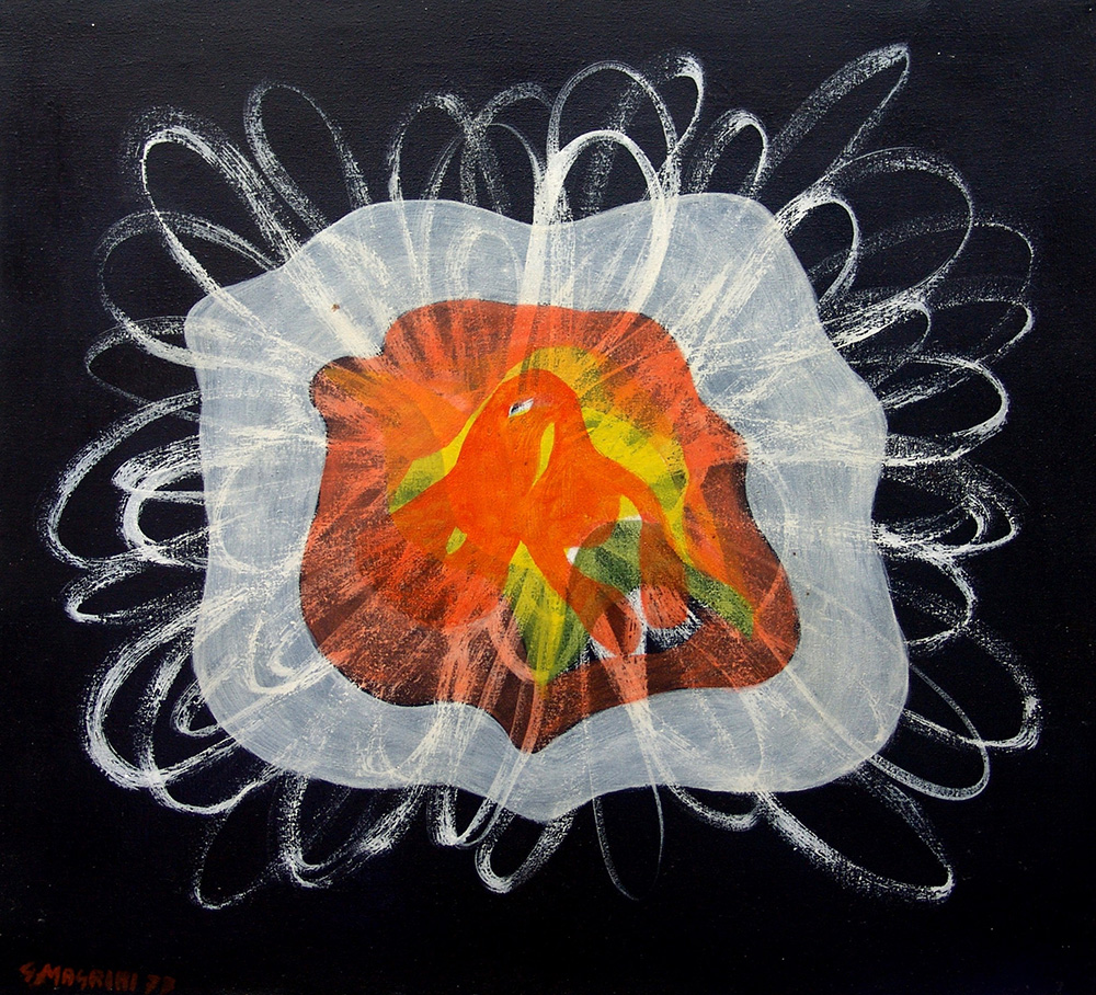 Giannetto Magrini 1938, Jesi (An) - [Italia] Composizione organica olio e acrilico su tela 58x65 cm 1977 firma dell’artista in basso a sinistra e sul retro certificato di autenticità dell'artista su fotografia
