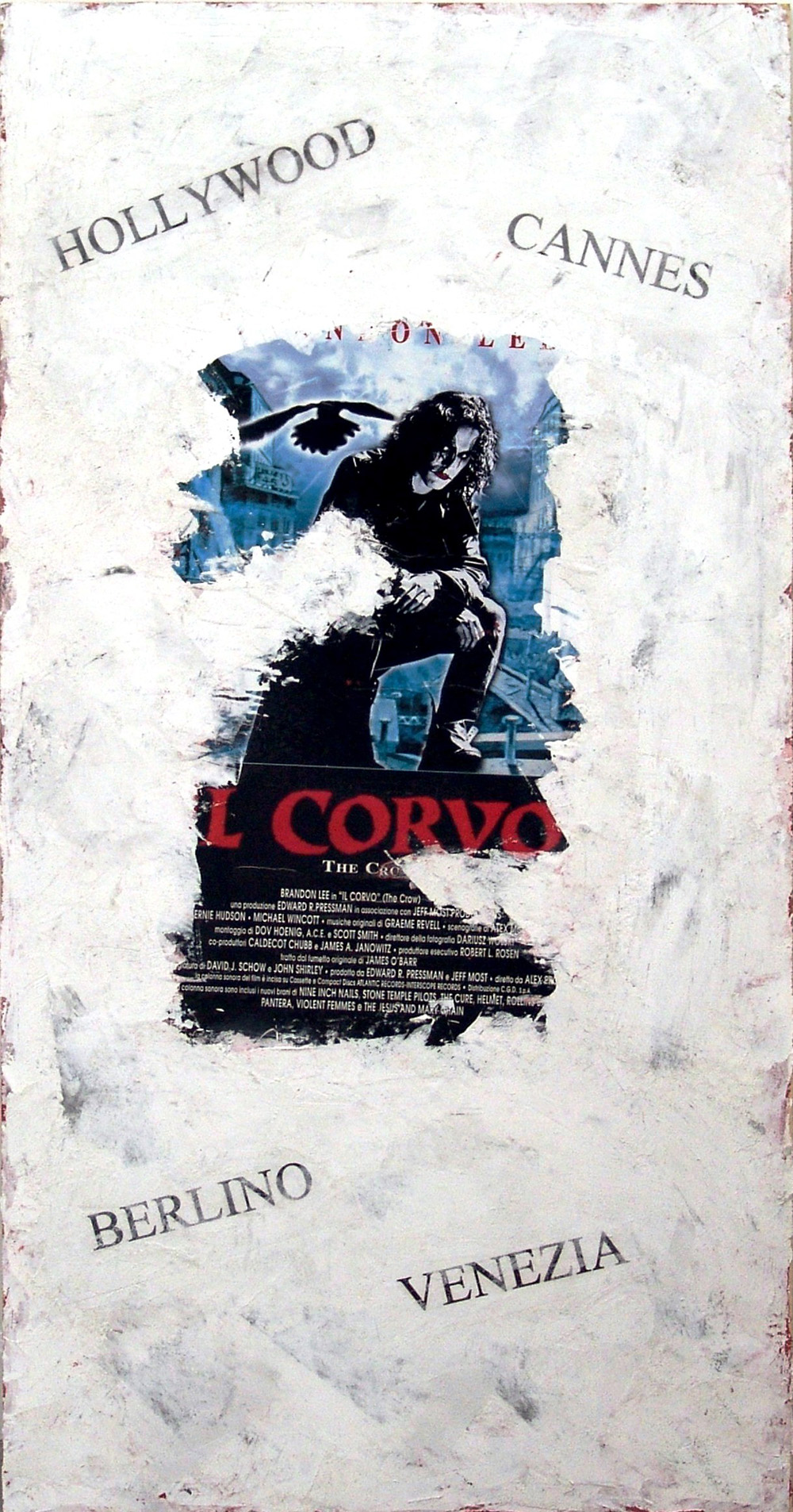 Andrea Latini 1961, Anderlecht (Belgio) - 2016, Cingoli (Mc) - [Italia] Il corvo tecnica mista su tavola 100x50 cm 2015 certificato di autenticità Picenum