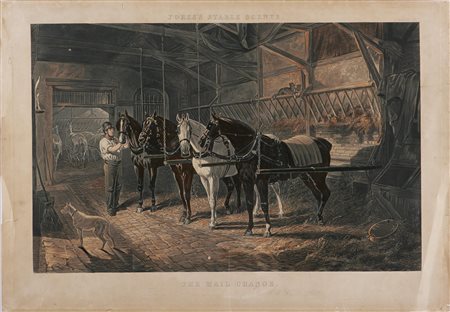 HARRIS JOHN Il cambio dei cavalli alla posta. 1846. Litografia. Cm 79,3x55,8. John Harris è attivo a Londra verso la metà del XIX sec. Incisione litografica a colori ritoccata a mano tratta da un dipinto di Herring - Londra 1846 - Dim. della stampa con discreti margini L. 79,3 x 55,8 cm. (dim. della sola parte incisa senza le lettere: L. 68,3 x 44,5 cm.).Bibliogr.: MILESI, 177 - BENEZIT, II, 556 (Ed. del 1918) - H. MIREUR, III, 412 - BRYAN’S, III, 17.