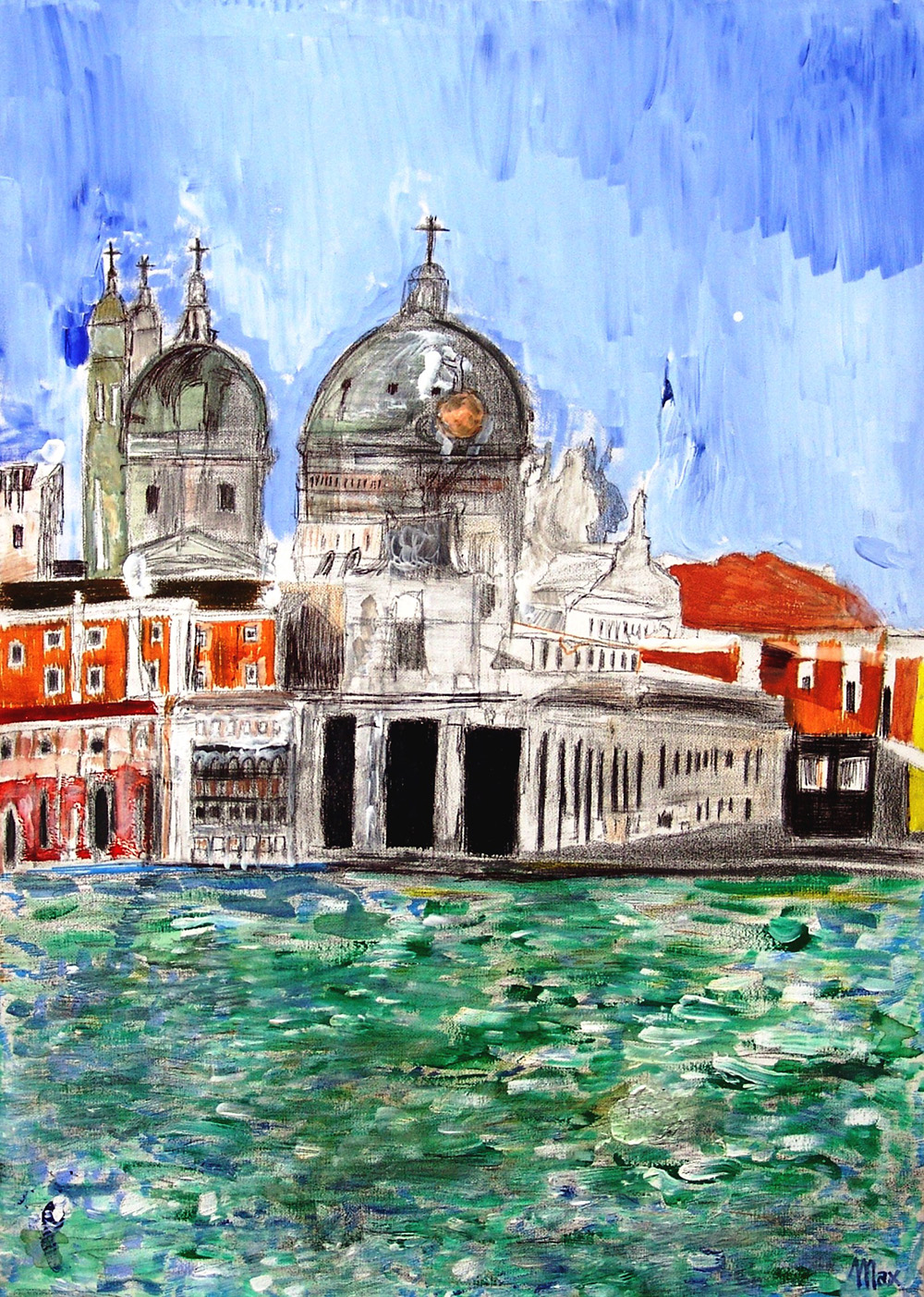 Massimiliano Carisdeo 1968, Ancona (An) - [Italia] La porta della dogana a Venezia tecnica mista su tela 70x50 cm 2018 firma dell'artista in basso a destra certificato di autenticità Picenum
