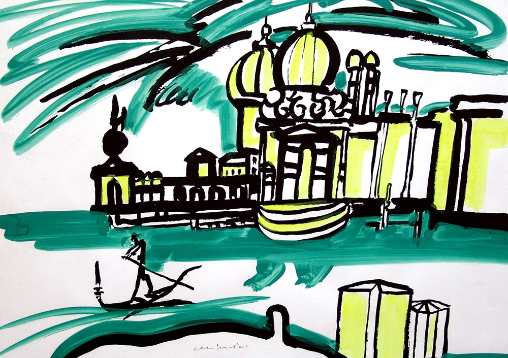 Remo Brindisi 1918, Roma (Rm) - 1996, Lido di Spina (Fe) - [Italia] Venezia acquerello su carta 50x70 cm firma dell'artista in basso al centro; opera con cornice; provenienza precedente Philosofarte di Montegranaro certificato di autenticità Picenum