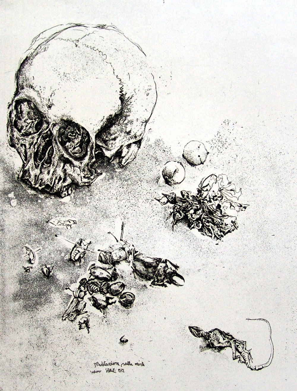 Roberto Stelluti 1951, Fabriano (An) - [Italia] Meditazione sulla morte acquaforte 69,5x49 cm 1972 es. p.d.a.; firma dell'artista in basso al centro certificato di autenticità Picenum