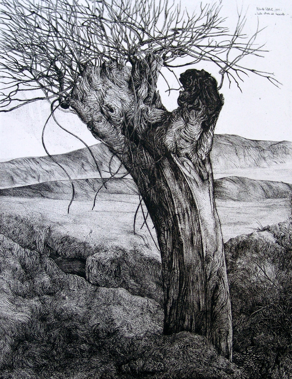 Roberto Stelluti 1951, Fabriano (An) - [Italia] Sulla strada del Lazzaretto acquaforte 70x50 cm 1977 es. 12/50; firma dell'artista in basso a sinistra certificato di autenticità Picenum