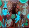 George Lilanga 1934, Kikwetu - 2005, Dar es Salaam - [Tanzania] Vijana wanapanga safari ya kwenda kutafuta maisha mazuri acrilico su faesite 61x61 cm firma dell’artista in basso a sinistra certificato di autenticità di Felix Lorenz