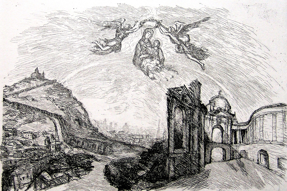 Pompilio Mandelli 1912, Luzzara (Re) - 2006, Bologna (Bo) - [Italia] senza titolo acquaforte 35x49,5 cm es. p.d.s.; firma dell'artista in basso a destra certificato di autenticità Picenum
