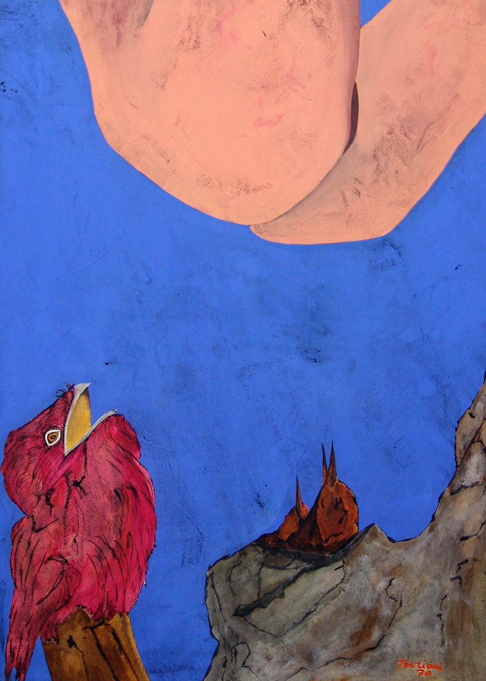 Nino Terziari 1929, Imola (Bo) - [Italia] senza titolo olio su tela 100x70 cm 1970 firma dell'artista in basso a destra; opera con cornice cartiglio sul retro de La Nuova Foglio di Pollenza