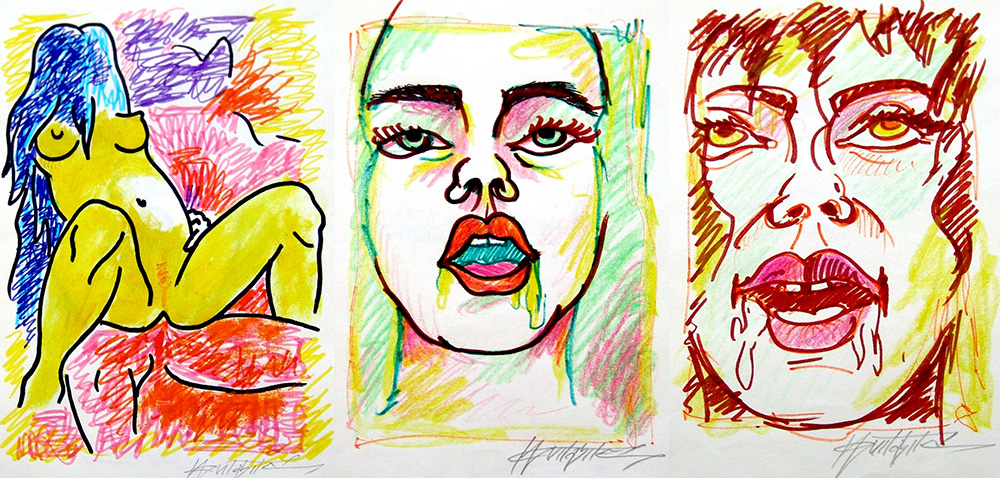 Salvatore Attanasio Avitabile 1972, Piano di Sorrento (Na) - [Italia] Bad girl (lotto unico con tre opere) tecnica mista su carta 30x21 cm cad. 3 disegni firmati dall’artista in basso e sul retro autentica dell'artista sul retro delle opere