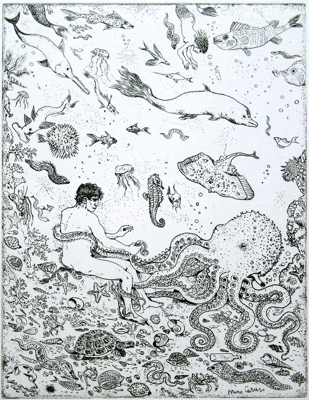 Bruno Caruso 1927, Palermo (Pa) - 2018, Roma (Rm) - [Italia] senza titolo acquaforte 50x35 cm es. XIII/L; firma dell'artista in basso a destra certificato di autenticità Picenum