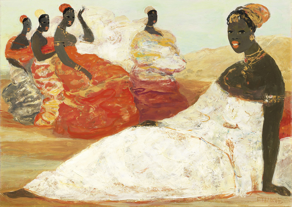 Salvatore Fiume, Comiso (Rg) 1915 - Milano 1997, Somale, Olio e tecnica mista su stoffa applicata su pannello, cm. 50x70, Firma in basso a destra: Fiume., Foto autenticata dall'artista in data 2.3.81.