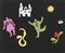 Niki de Saint Phalle, Neuilly-sur-Seine 1930 - San Diego 2002, Composizione, Collage di carte colorate e matite su cartoncino nero, cm. 49,5x60