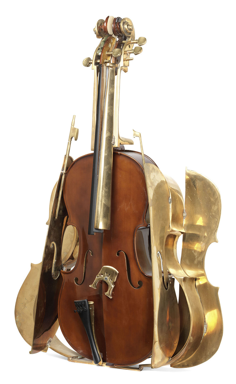 Arman, Nizza 1928 - 2005, Chrysalide, 2002, Violoncello in bronzo e legno, sezionato e riassemblato, es. 7/8, cm. 114 h., Firma e tiratura in basso a destra: Arman / 7/8., Certificato con foto Fondation A.R.M.A.N. in data 23 marzo 2017, con n. 125266; certificato su foto Archives Denyse Durand-Ruel, con n. 8787., Scultura realizzata in 8 esemplari più 4 prove d'artista.