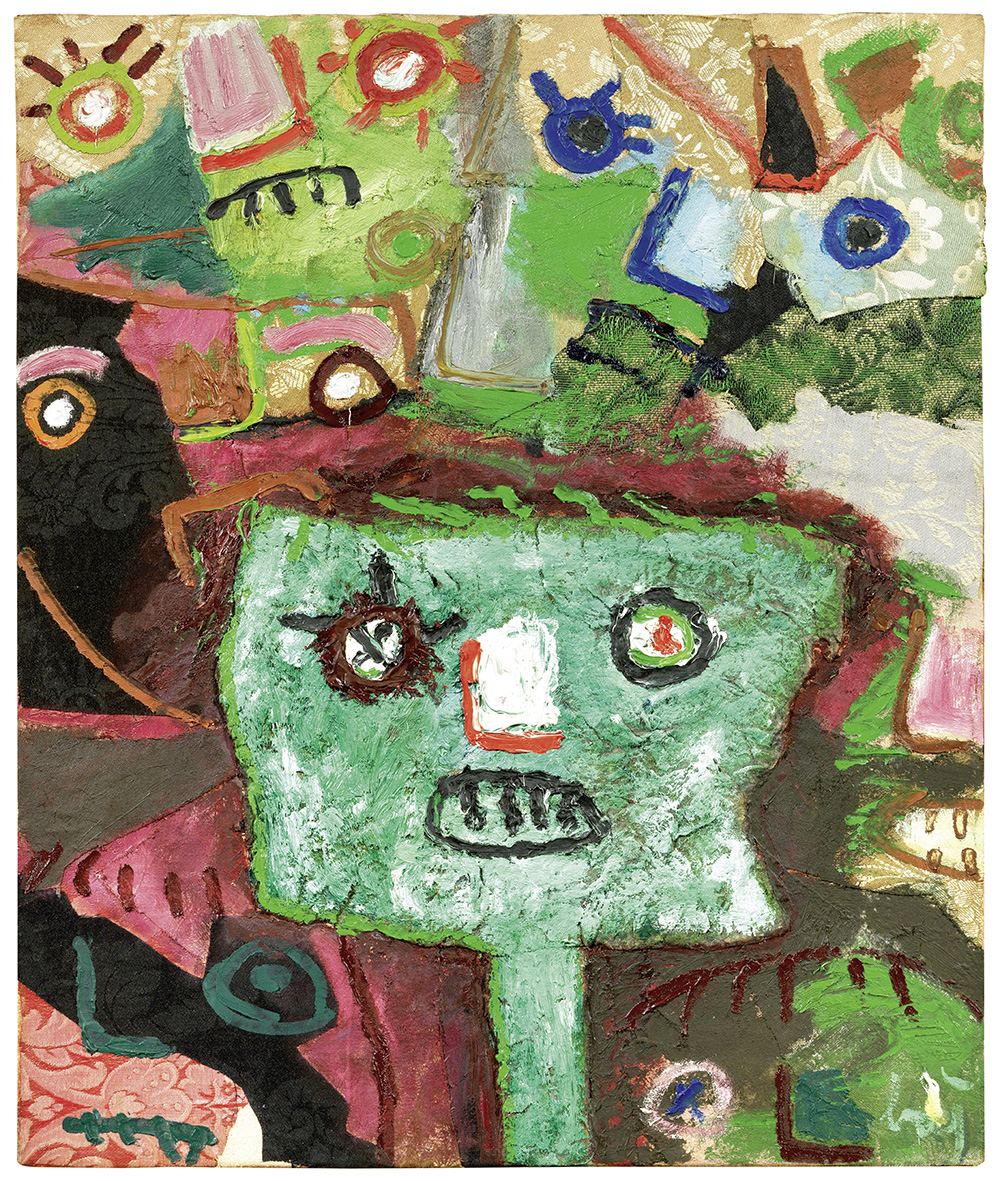 Enrico Baj, Milano 1924 - Vergiate (Va) 2003, Folla in rivolta, 1963, Olio e collage su tela, cm. 55x46, Firma in basso a destra: Baj. Al verso sulla tela: firma Rinaldo Rotta., Bibliografia: Roberta Cerini, Martina Corgnati, Enrico Baj. Catalogo generale delle opere dal 1972 al 1996, Ediz. Marconi-Menhir, 1997, p. 491, n. 918.B.