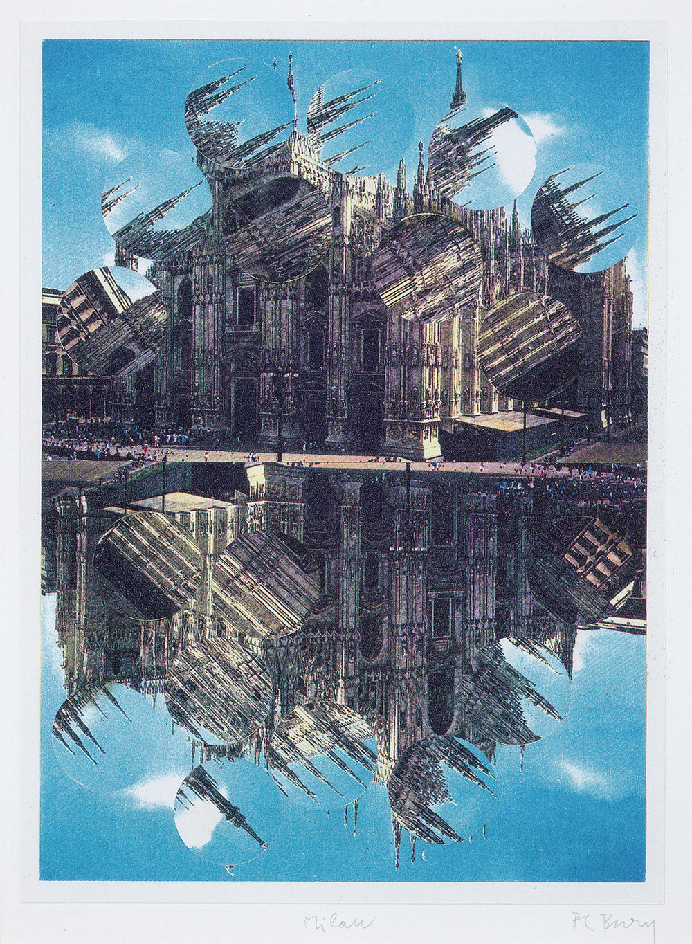 Pol Bury, Haine-Saint-Pierre 1922 - 2005, Lotto di due collage a soggetto Milan, Collage su carta, cm. 23,5x 17,5 ognuno, Entrambi con titolo e firma a matita sul margine in basso: Milan / Pol Bury.