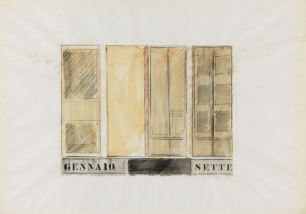 Tano Festa, Roma 1938 - 1987, Gennaio sette, 1962, Tecnica mista su carta,...