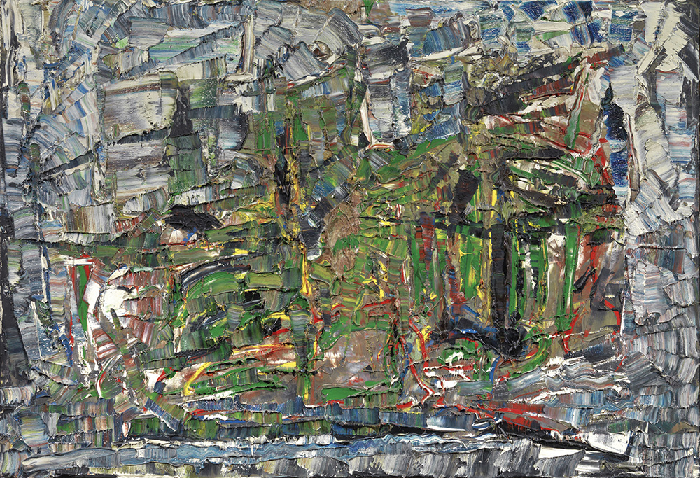 Jean Paul Riopelle, Montreal 1923 - 2002, Sapinage, 1973, Olio su tela, cm. 88x130; Firma in basso a destra: Riopelle; titolo al verso sul telaio: Sapinage: etichetta Galerie Maeght, Paris, con n. 13652: etichetta Falchi Arte Moderna, Milano.; Certificato su foto di Yseult Riopelle, in data 26 febbraio 2007, con n. 237-CO-AM e n. 1973. 17 H.