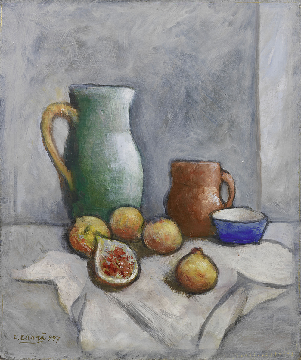 Carlo Carrà, Quargnento (Al) 1881 - Milano 1966, Natura morta con brocca,...