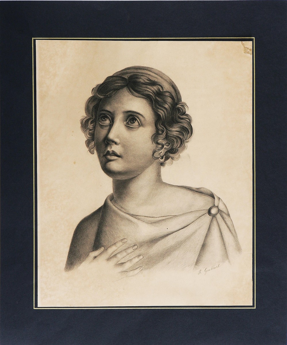 GUILLARD P. Busto di giovane donna. Matita su cartoncino. Cm 37,2x46. P....