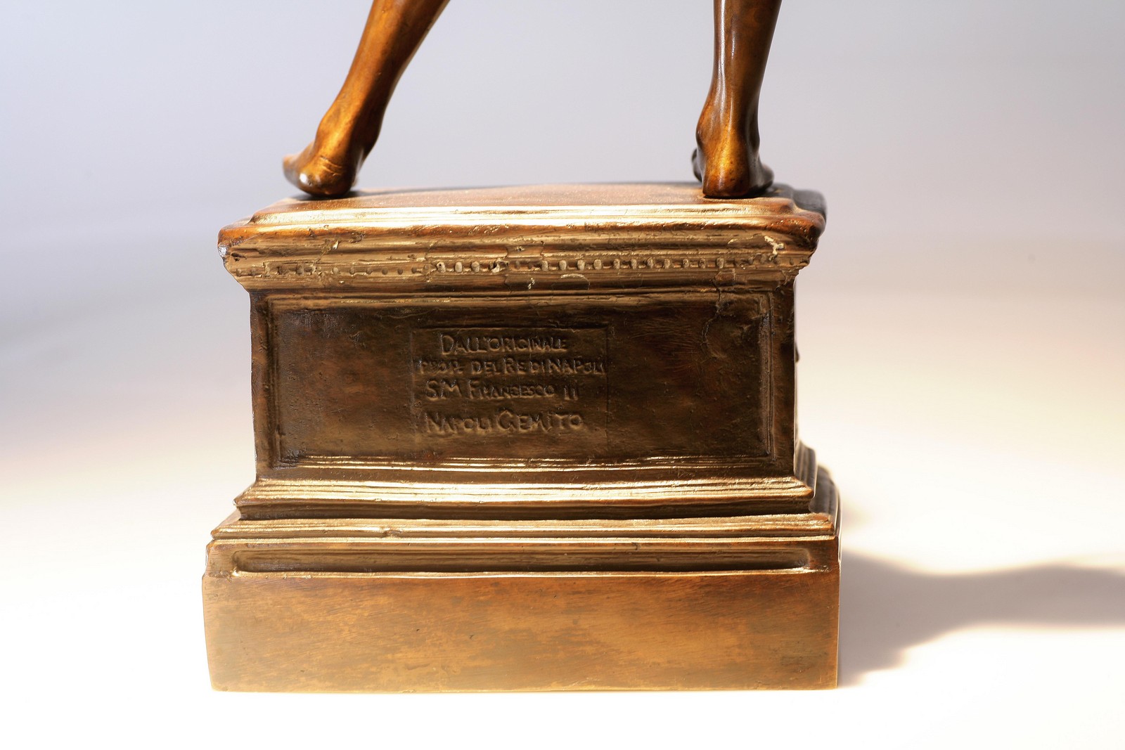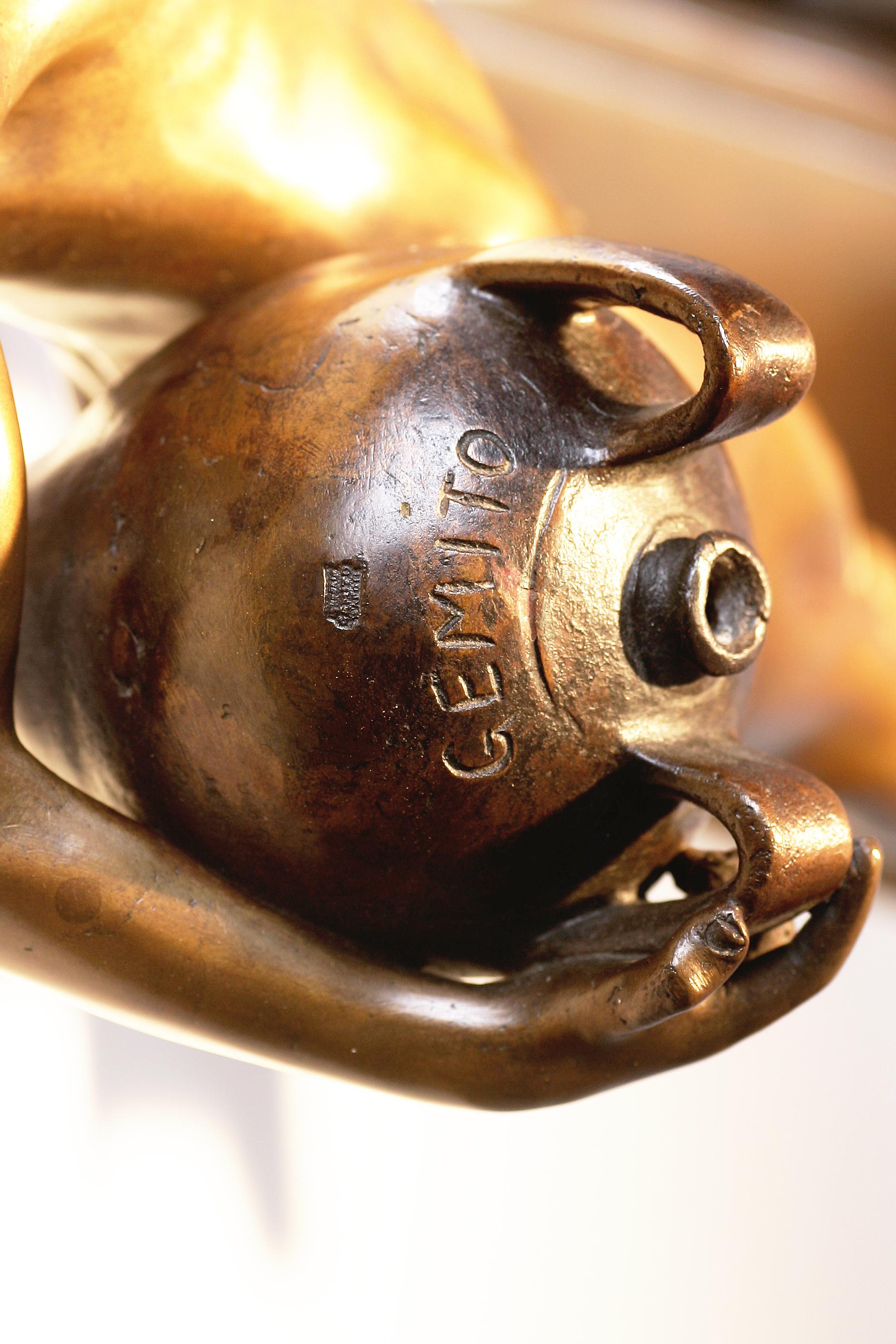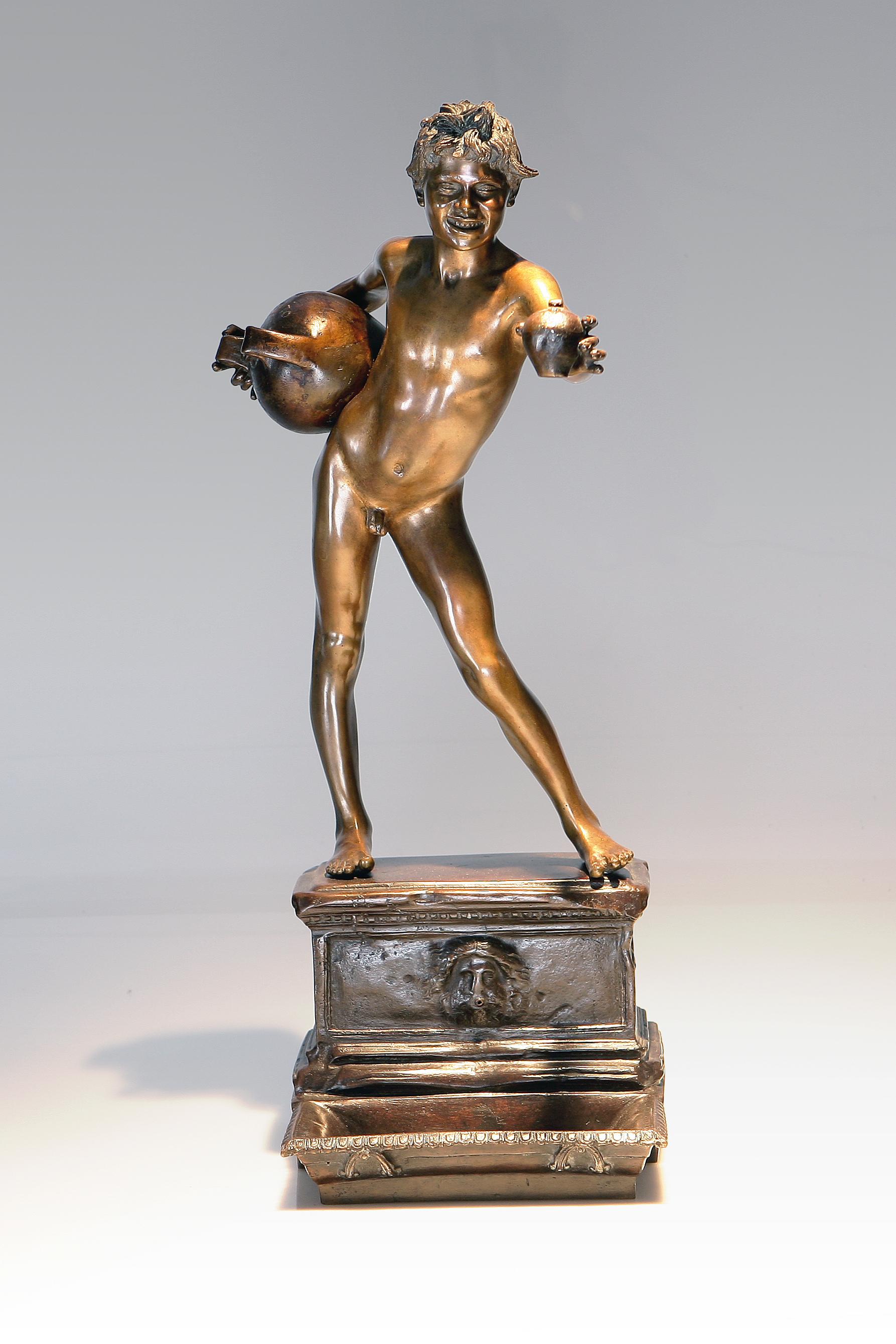 GEMITO VINCENZO (1852 - 1929) Pescatorello. Bronzo. Cm 19x54x19. Sulla base al retro reca la scritta dall'originale prot. del Re di Napoli SM Francesco II. Napoli Gemito. Nella parte superiore della botte sostenuta nel braccio destro del fanciullo è presente la firma GEMITO e il punzone Fonderia Gemito Napoli.