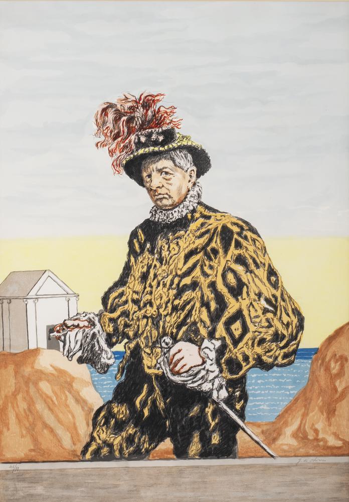 Giorgio De Chirico AUTORITRATTO litografia a colori, foglio cm 100x70; es. 46/99 firmato e numerato eseguito nel 1972 Bibliografia: Giorgio de Chirico. Catalogo dell'opera grafica 1969-1977, Bologna 1999, copertina e p. 183