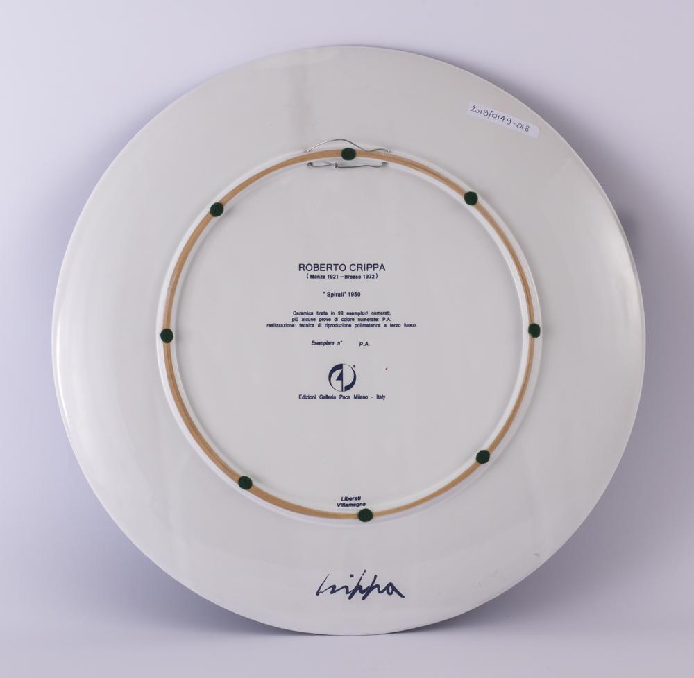 Roberto Crippa SPIRALI 1950 ceramica invetriata, diametro cm 41; es. p.a. sul retro: firmato e numerato edizioni Galleria Pace, Milano Ceramiche d'Arte Liberati, Villamagna