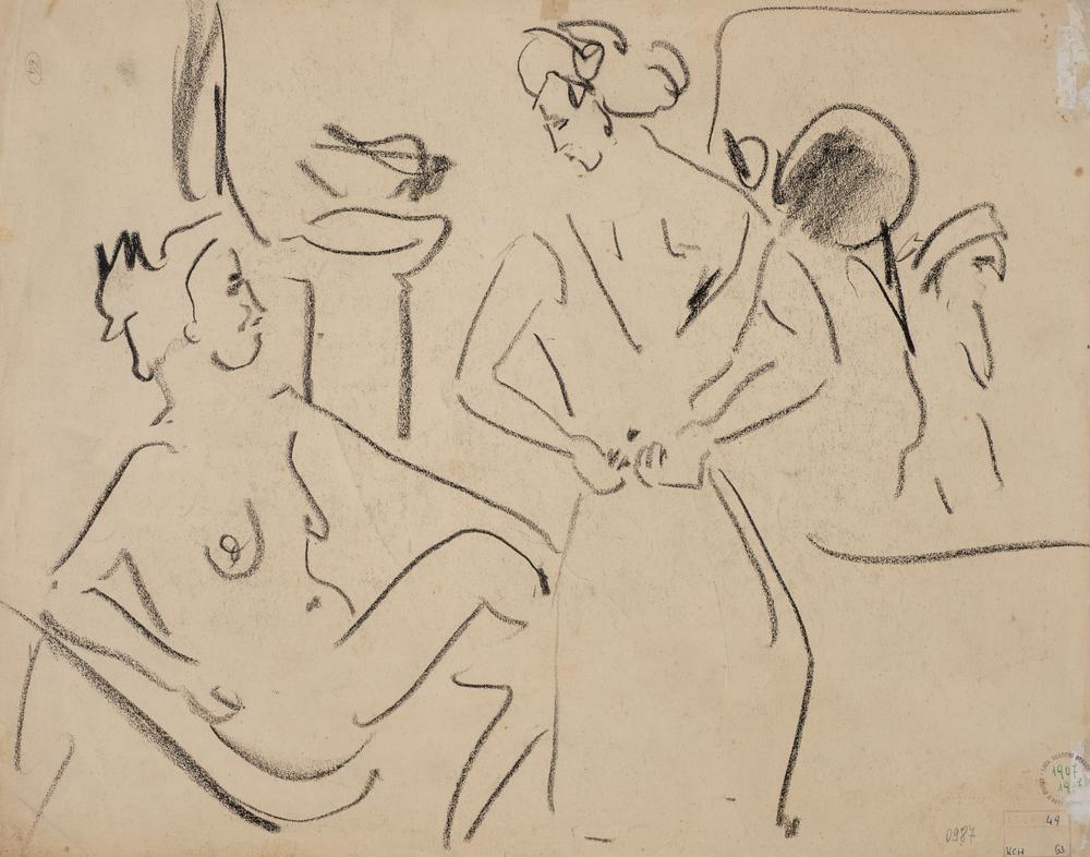 Ernst Ludwig Kirchner ATELIERSZENE (recto) WEIBLICHER AKT (verso) Gessetto...