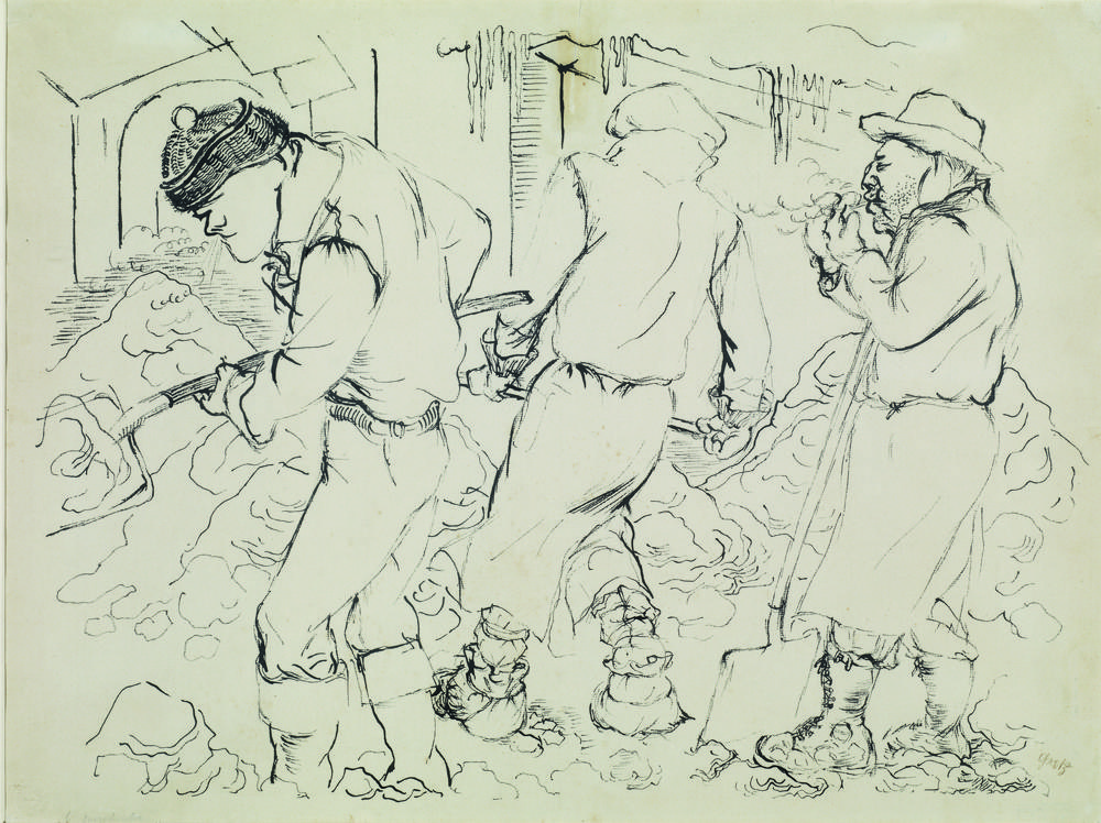 George Grosz SPALATORI DI NEVE penna e inchiostro nero su carta, cm 48x63...