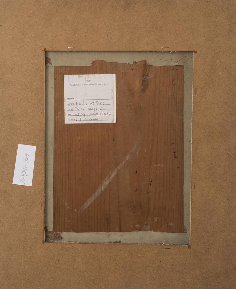 Filippo De Pisis VASO DI FIORI olio su tavola, cm 35x28 firmato e siglato eseguito nel 1947 L’opera è registrata presso l'Associazione Filippo de Pisis con il n. 02437 ed è accompagnata da autentica dell’Associazione per Filippo de Pisis su fotografia in data 2004 Provenienza: Galleria Nuova Gissi, Torino Collezione privata, Torino