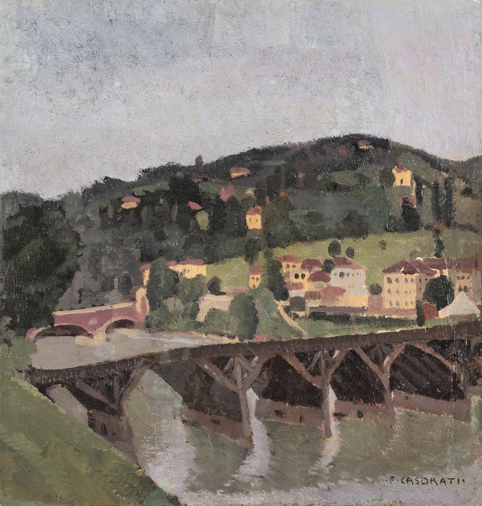 Felice Casorati PONTE (MONCALIERI) olio su cartone, cm 33x32 sul fronte:...